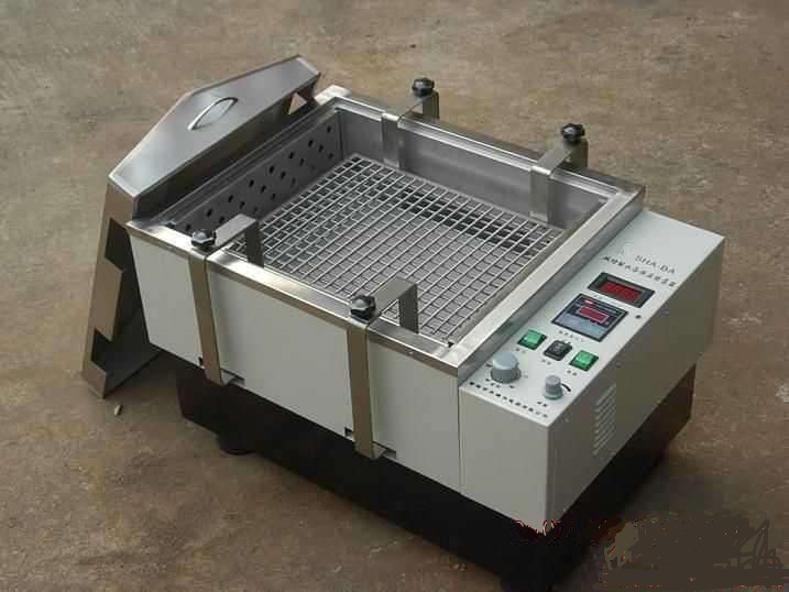 (1)首先檢查儀器水閥是否關(guān)閉,加水至適當(dāng)高度,然后將儀器的電源插頭插在容量不小于2千瓦,有“接地"的電源上,將定時器選至你需要的工作時間,或選至常開位置。按下電源開關(guān),電源指示燈亮表明機(jī)內(nèi)電源已經(jīng)接通,旋動調(diào)速旋鈕選擇所需振蕩頻率。